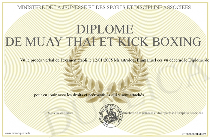 Envoyez par email votre Diplôme de MUAY THAI et KICK BOXING personalisé