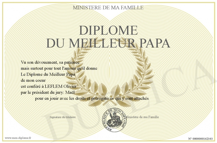 Envoyez par email votre Diplôme du Meilleur Papa personalisé