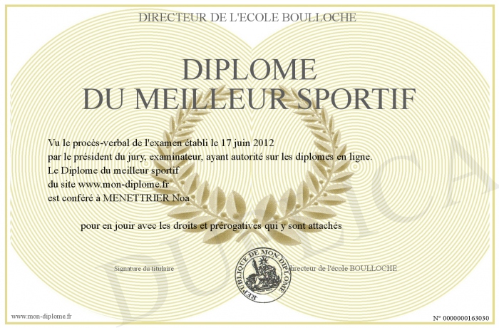 Envoyez par email votre Diplôme du meilleur sportif personalisé