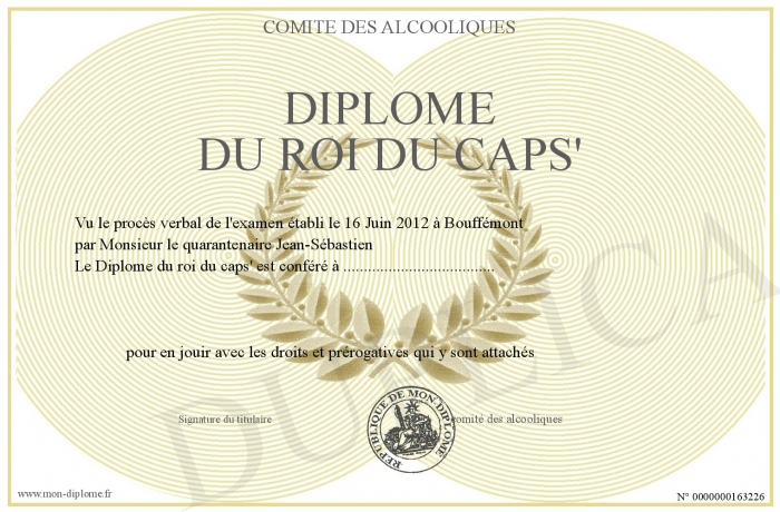 Envoyez par email votre Diplôme du roi du caps' personalisé