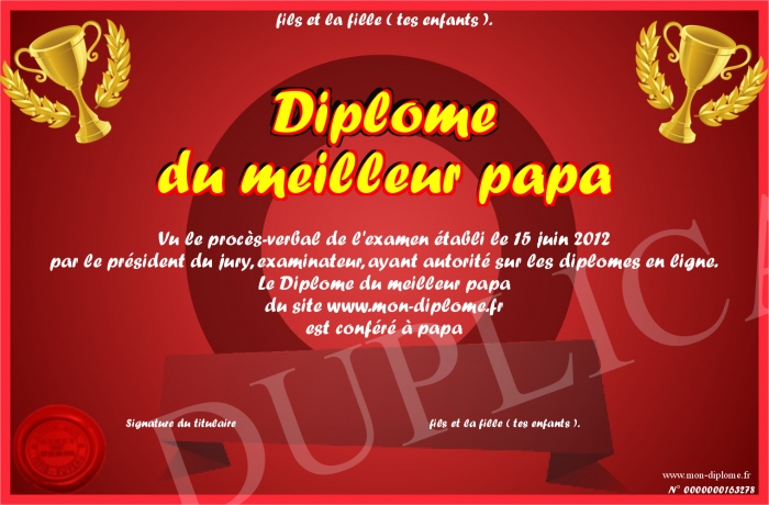 Envoyez par email votre Diplome du meilleur papa personalisé