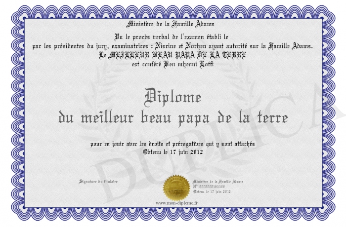 Envoyez par email votre Diplôme du meilleur beau papa de la terre personalisé