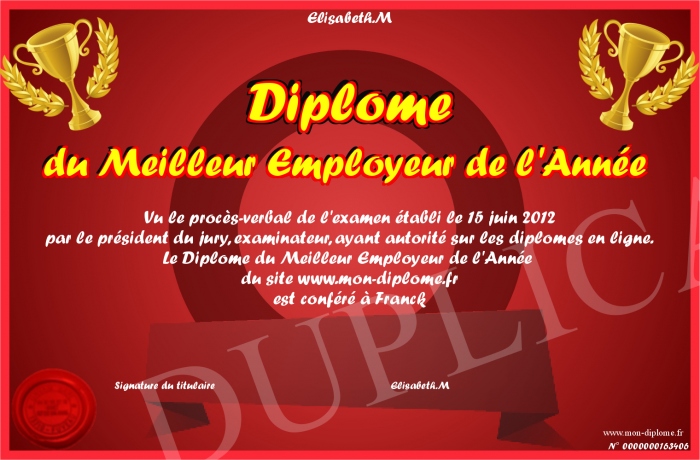 Envoyez par email votre Diplôme du Meilleur Employeur de l'Année personalisé