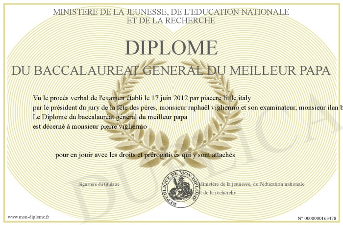 Envoyez par email votre Diplôme du baccalauréat général du meilleur papa personalisé