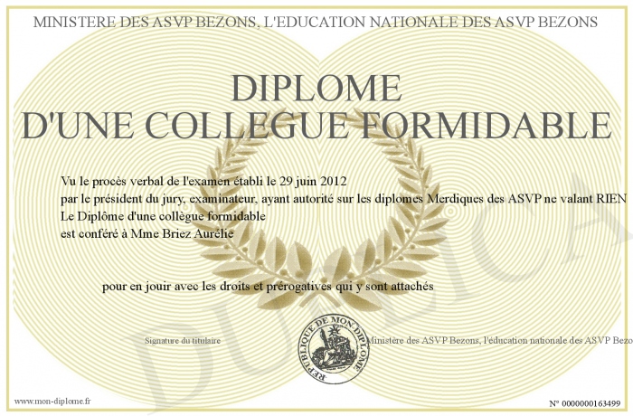 Envoyez par email votre Diplôme d'une collègue formidable personalisé