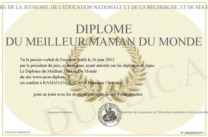 Envoyez par email votre Diplôme du Meilleur Maman Du Monde personalisé