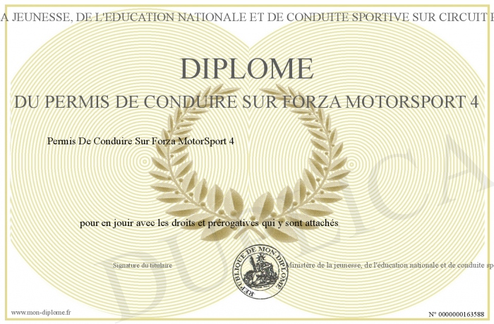 Envoyez par email votre Diplôme du permis de conduire sur forza motorsport 4 personalisé