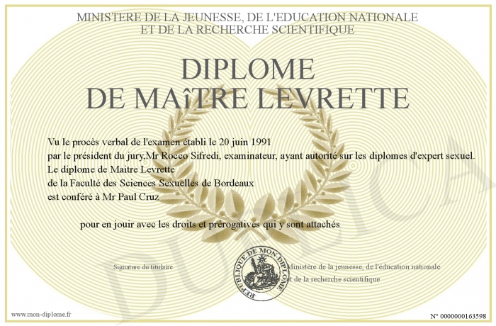 Envoyez par email votre Diplôme de Maître Levrette personalisé