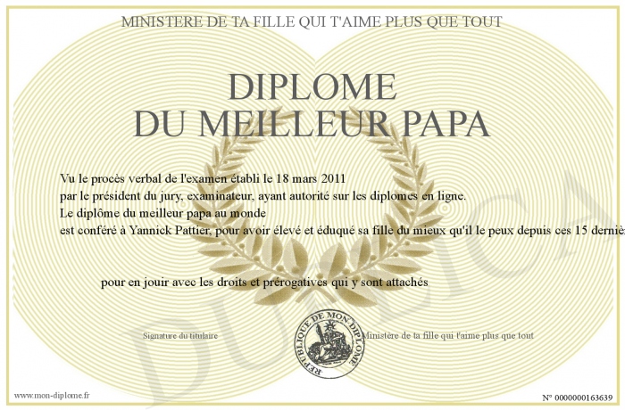 Envoyez par email votre Diplôme du meilleur papa personalisé