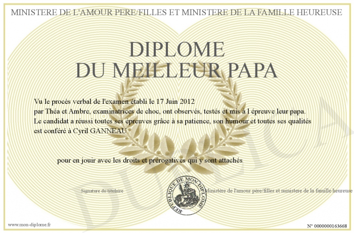 Envoyez par email votre Diplôme du meilleur papa personalisé