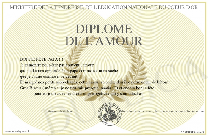 Envoyez par email votre diplôme de l'amour personalisé