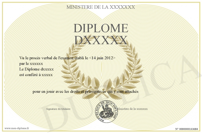 Envoyez par email votre Diplôme dxxxxx personalisé