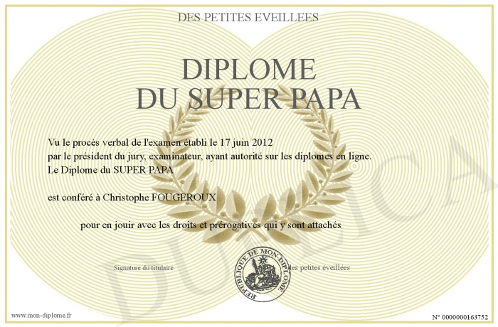 Envoyez par email votre Diplôme du SUPER PAPA personalisé
