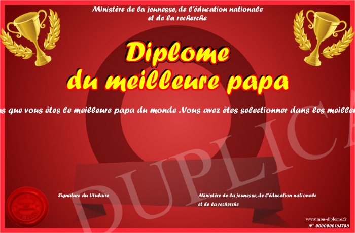 Envoyez par email votre Diplôme du meilleure papa personalisé