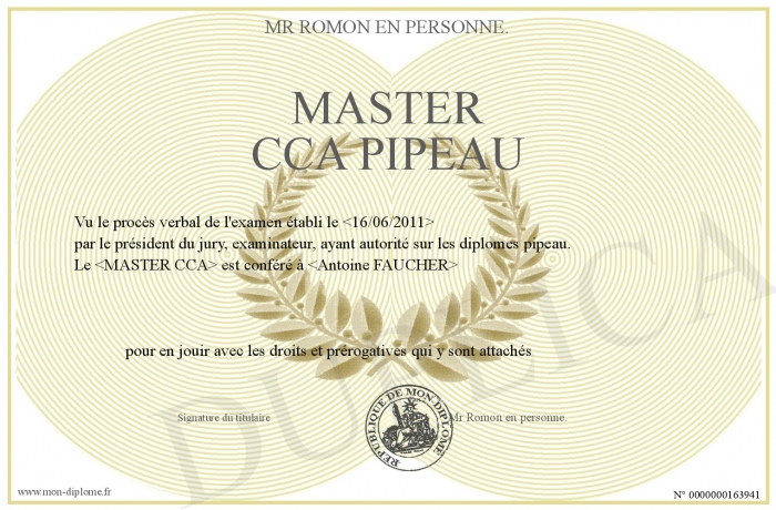 Envoyez par email votre MASTER CCA PIPEAU personalisé