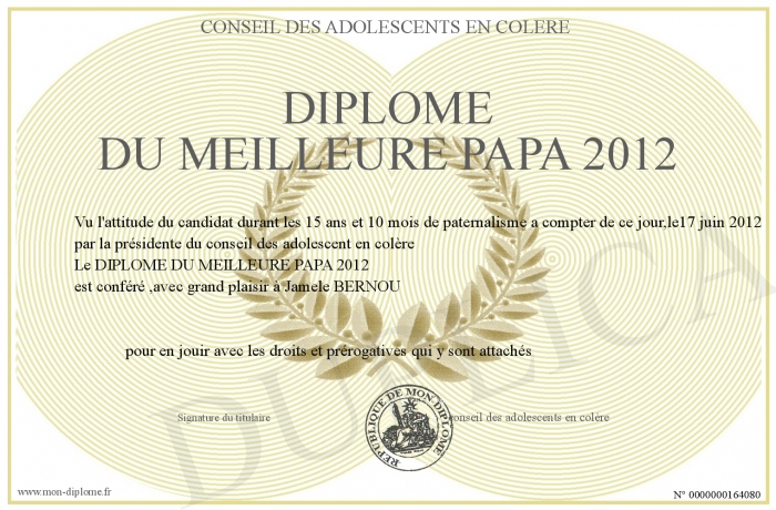 Envoyez par email votre DIPLOME DU MEILLEURE PAPA 2012 personalisé