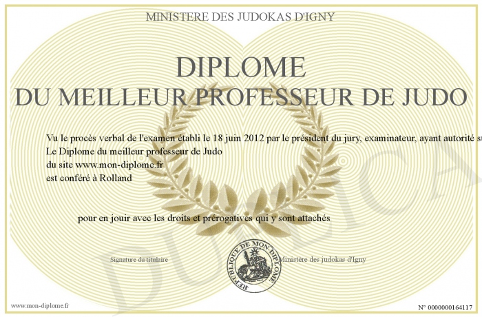 Envoyez par email votre Diplome du meilleur professeur de Judo personalisé