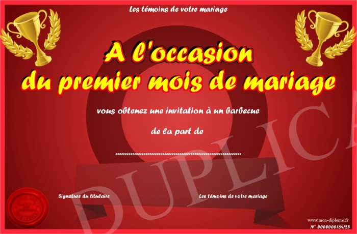 Envoyez par email votre A l'occasion du premier mois de mariage personalisé