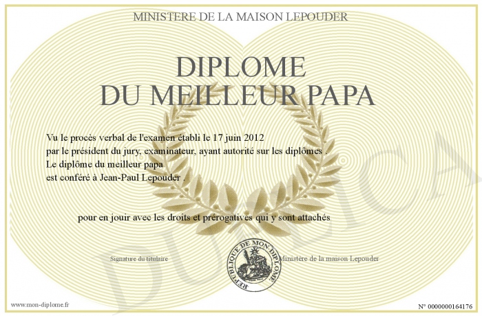 Envoyez par email votre Diplôme du meilleur papa personalisé