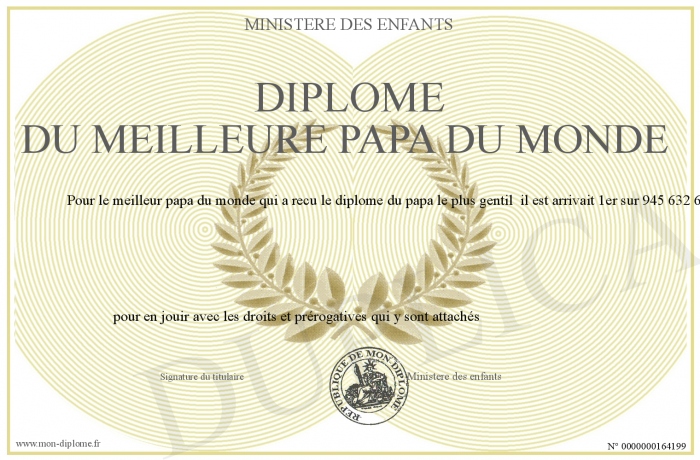 Envoyez par email votre Diplôme du meilleure papa du monde personalisé