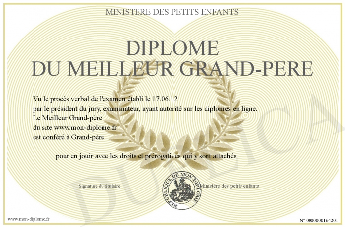 Envoyez par email votre Diplôme du Meilleur Grand-père personalisé