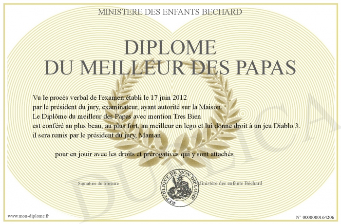 Envoyez par email votre Diplôme du meilleur des Papas personalisé