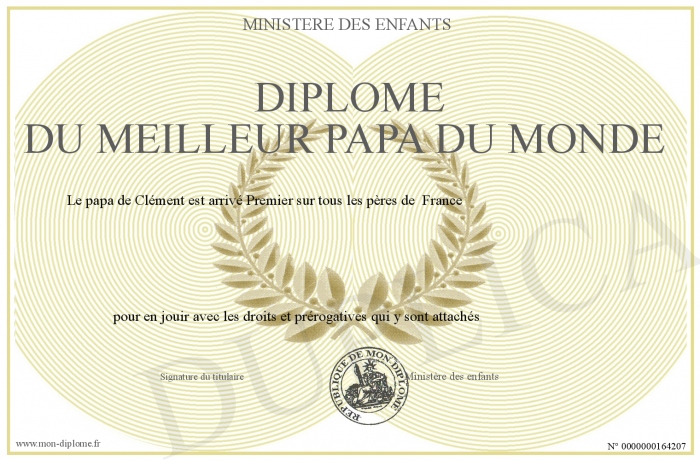 Envoyez par email votre Diplôme du meilleur Papa du monde personalisé