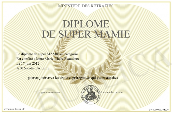 Envoyez par email votre Diplôme de super Mamie personalisé