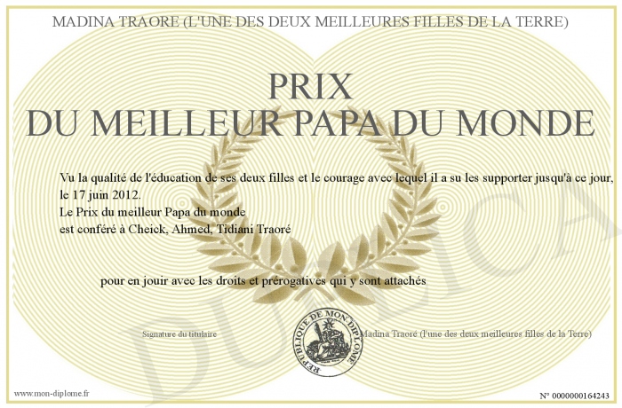 Envoyez par email votre Prix du meilleur Papa du monde personalisé