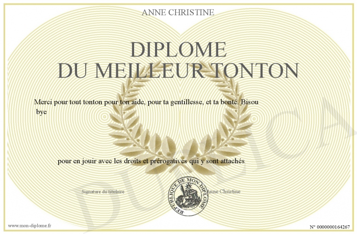 Envoyez par email votre Diplôme du meilleur tonton personalisé