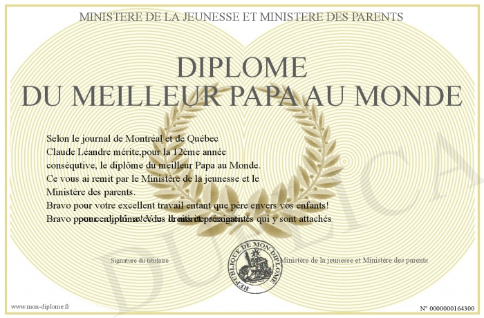 Envoyez par email votre Diplôme du Meilleur Papa au Monde personalisé