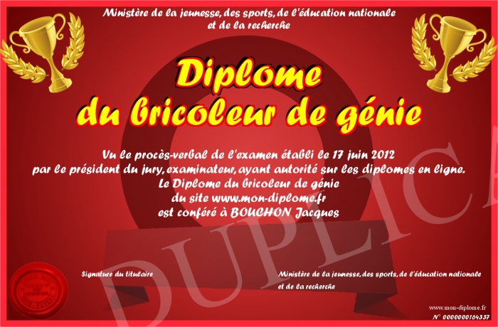 Envoyez par email votre Diplôme du bricoleur de génie personalisé