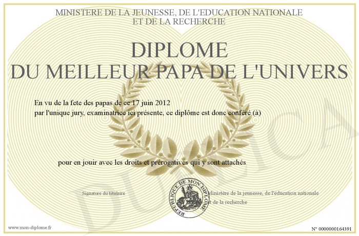 Envoyez par email votre Diplôme Du Meilleur Papa De l'Univers personalisé