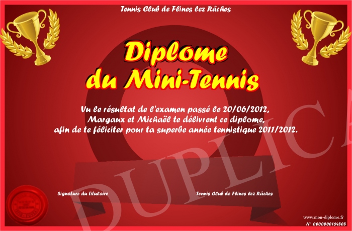 Envoyez par email votre Diplôme du Mini-Tennis personalisé