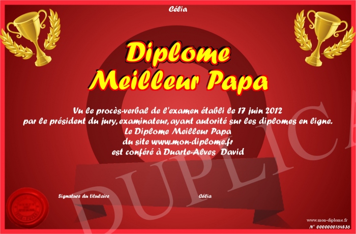 Envoyez par email votre Diplôme Meilleur Papa personalisé