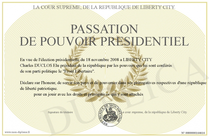 Envoyez par email votre PASSATION DE POUVOIR PRESIDENTIEL personalisé