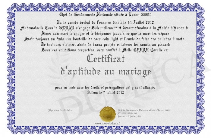 Envoyez par email votre Certificat d'aptitude au mariage personalisé