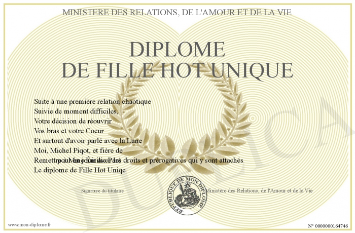 Envoyez par email votre Diplome de Fille Hot Unique personalisé