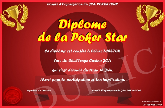 Envoyez par email votre Diplôme de la Poker Star personalisé