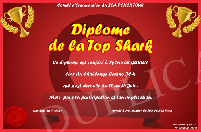 Envoyez par email votre Diplôme de la Top Shark personalisé