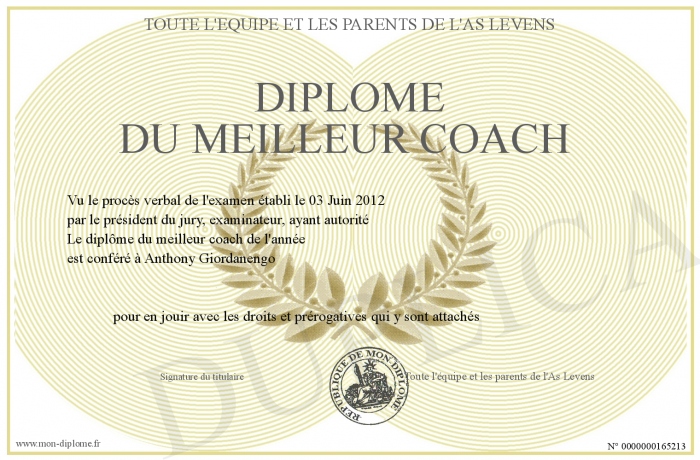 Envoyez par email votre Diplôme du meilleur coach personalisé
