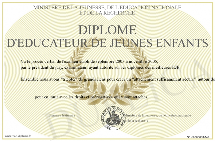 Envoyez par email votre Diplome d'Educateur de Jeunes Enfants personalisé