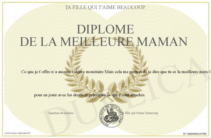 Envoyez par email votre Diplôme de la Meilleure Maman personalisé