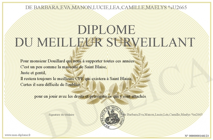 Envoyez par email votre Diplôme du meilleur surveillant personalisé