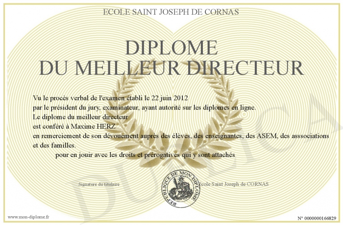 Envoyez par email votre diplôme du meilleur directeur personalisé