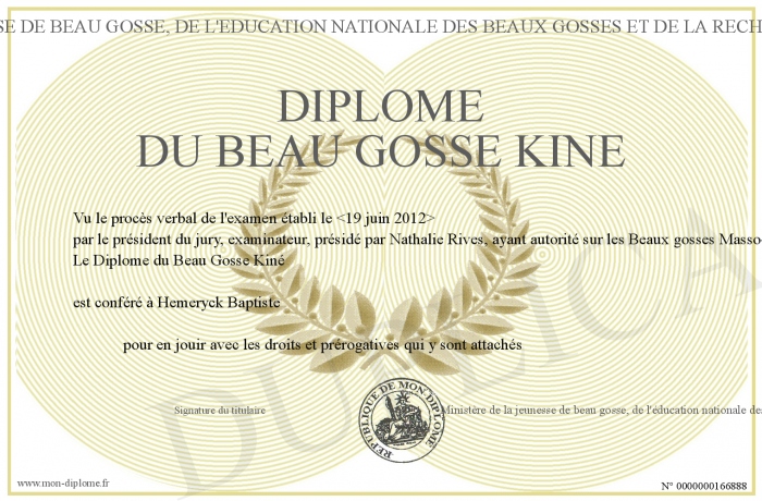 Envoyez par email votre Diplôme du Beau Gosse Kiné personalisé