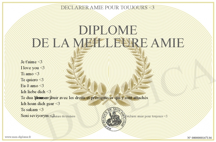 Envoyez par email votre Diplôme de la meilleure amie personalisé