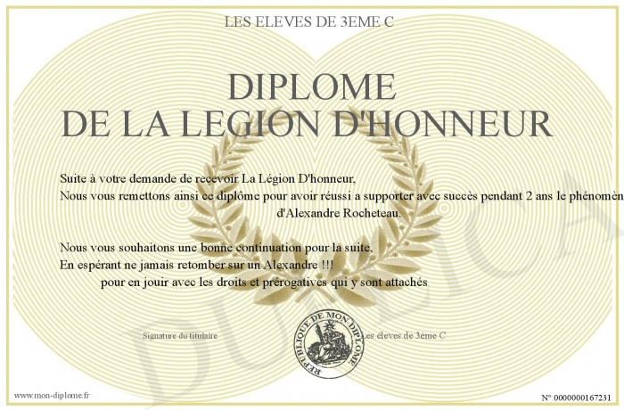 Envoyez par email votre Diplôme de la Légion D'honneur personalisé