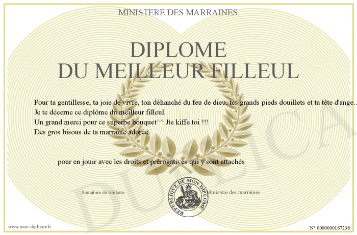 Envoyez par email votre Diplôme du meilleur filleul personalisé