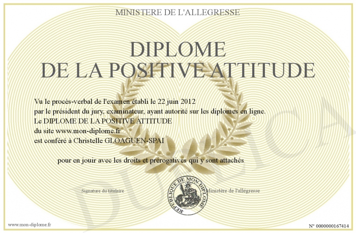 Envoyez par email votre DIPLOME DE LA POSITIVE ATTITUDE personalisé
